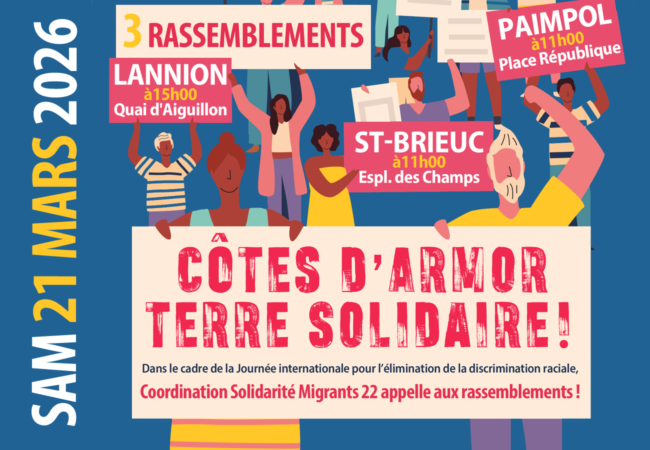 Dans le cadre de journée mondiale de lutte contre le régime de mort aux frontières, la Coordination Antiracisme Trégor-Goëlo organise un rassemblement à Lannion…
